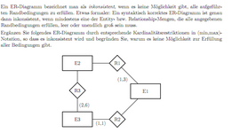 Aus meiner Sicht ist das schon gegeben, ziemlich egal was man dort einträgt. Tabelle E2 setzt 2 Relationen zu E3 und eine zu E1 voraus. Da aber jeder Eintrag in E3 einen in E1 erfordert muss E2 irgendwann unendlich groß werden. Denn jeder weitere Eintrag in E2 erfordert wieder einen in E2 der wieder 2 in E3 erfordert die wiederum beide einen in E1 erfordern etc...