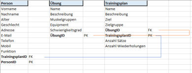 ich bin von Beruf Diplom-Wirtschaftsinformatiker und habe eigentlich täglich mit Datenbanken zu tun, vor allem im Bereich Business Intelligence / Reporting. Meine SQL Kenntnisse sind sehr gut, nichtsdestotrotz habe ich mich bisher nie so richtig mit dem Thema Datenbankdesign- bzw. Modellierung beschäftigt. Das soll sich nun ändern. Rein zu Übungszwecken möchte ich eine Datenbank für einen Personal Trainer gestalten (und später in Verbindung mit Python als Anwendung umsetzen).