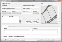 Also: Ich habe eine Datenbank, in der alles verwaltet wird. Vorher war ja meine Idee, für jede Kategorie eine Datenbank anzulegen. Diese Idee habe ich aber verworfen. Bleiben wir bei der Person. Da eine Person in meiner Datenbank so ziemlich alles sein kann, Autor, Musiker, Schauspieler oder einfach nur Freunde, werden die Personen in eine Tabelle untergebracht. Ganz nüchtern und neutral. Dafür gibt es eine Maske in meinem Programm. Die sieht wie folgt aus: